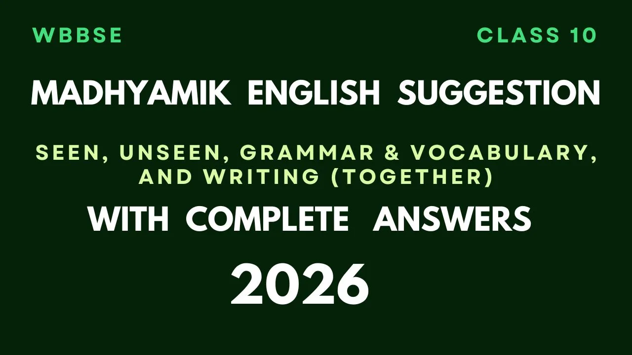 If you’re searching for the Madhyamik English Suggestion Class 10 with Answers 2026, you’ve come to the right place. This complete English suggestion for WBBSE students is designed to help you prepare smartly for the 2026 Madhyamik Examination. Based on the latest syllabus and previous year’s papers, it includes Seen, Unseen, Grammar, and Writing Skill questions with model answers. Each section is carefully analyzed to match the board’s question pattern so that you can practice and score full marks in English with confidence.